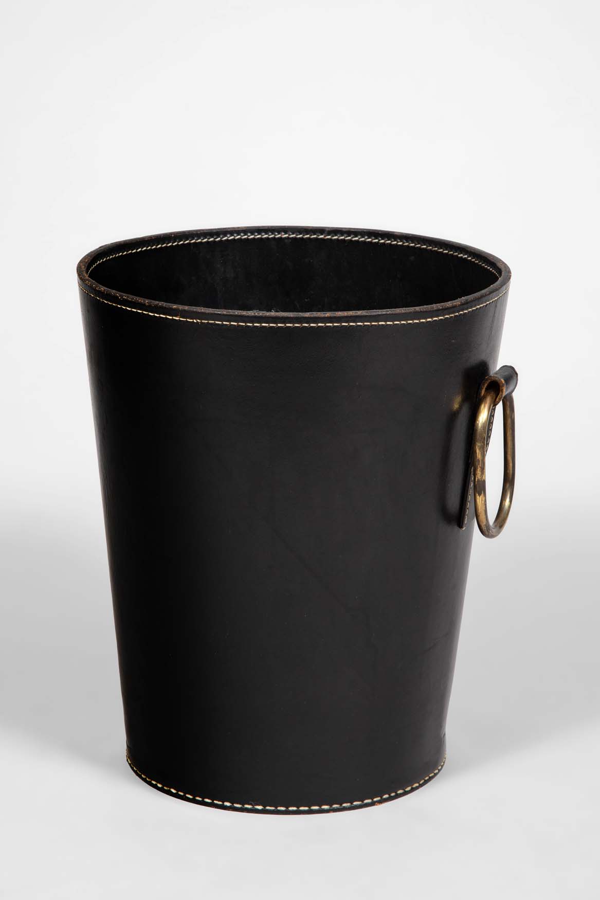 | Description | A leather paper bin with brass ring, Austria, 1950. |
